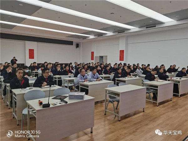 2021年12月23日,華天科技(寶雞)有限公司召開了經營班子及中層干部述職大會。公司經營班子成員、中層干部、主管及員工代表共計75人參加了會議。